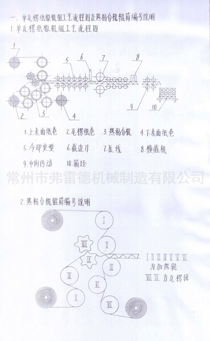 機組分為: 瓦楞熱粘合機,冷卻定型機,裁剪機,等。