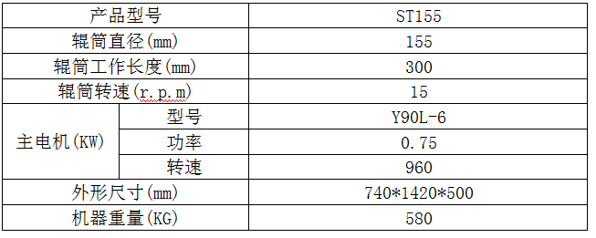 4 冷卻輥筒的轉速上限60r/ min主電機功率0.75kw,往下可調(變頻調速).輥筒間隙要求可調0-5mm, 整機底部裝四個軌道尼龍輪.